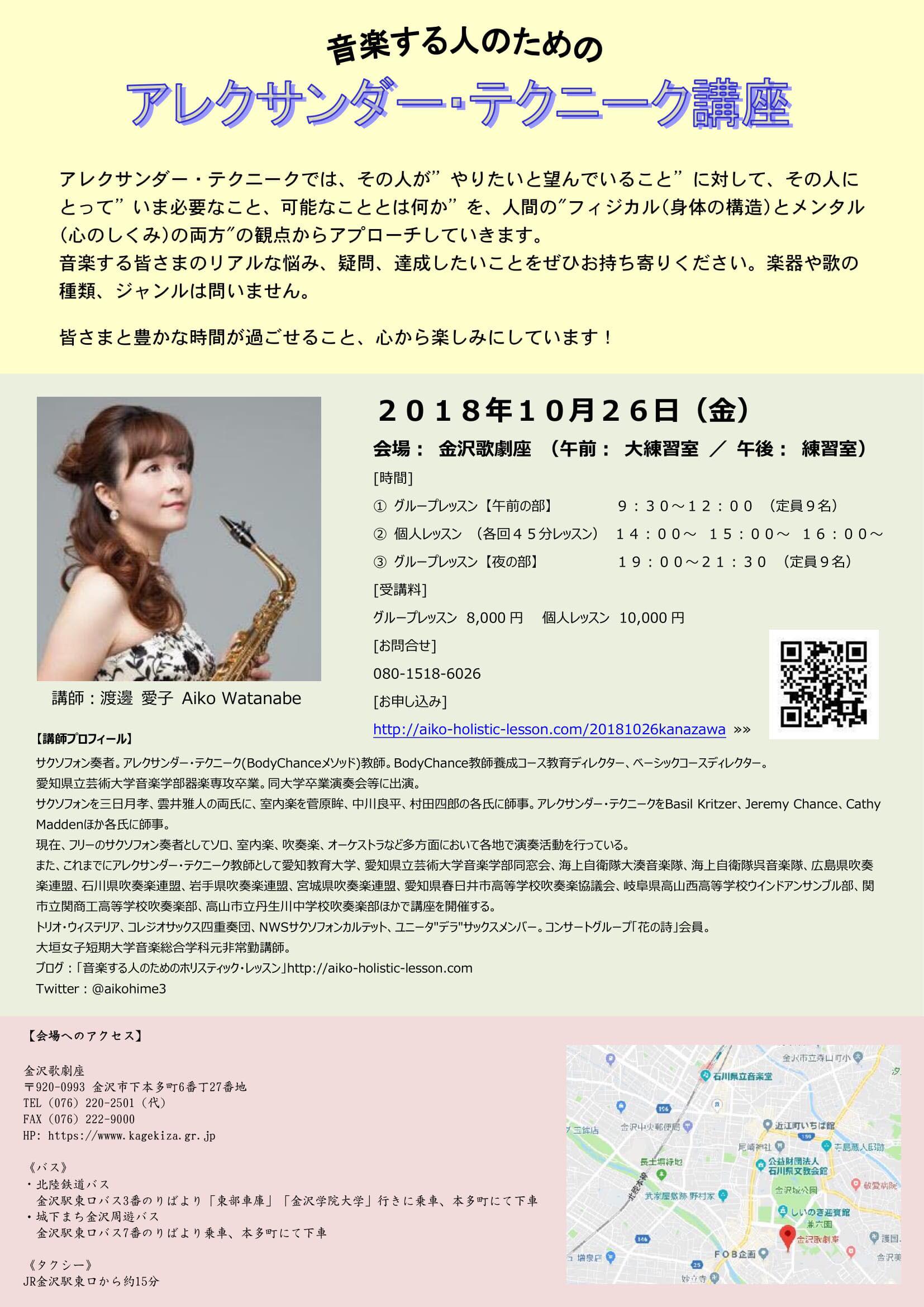 10/26(金) 愛子先生のアレクサンダー・テクニーク講座@金沢